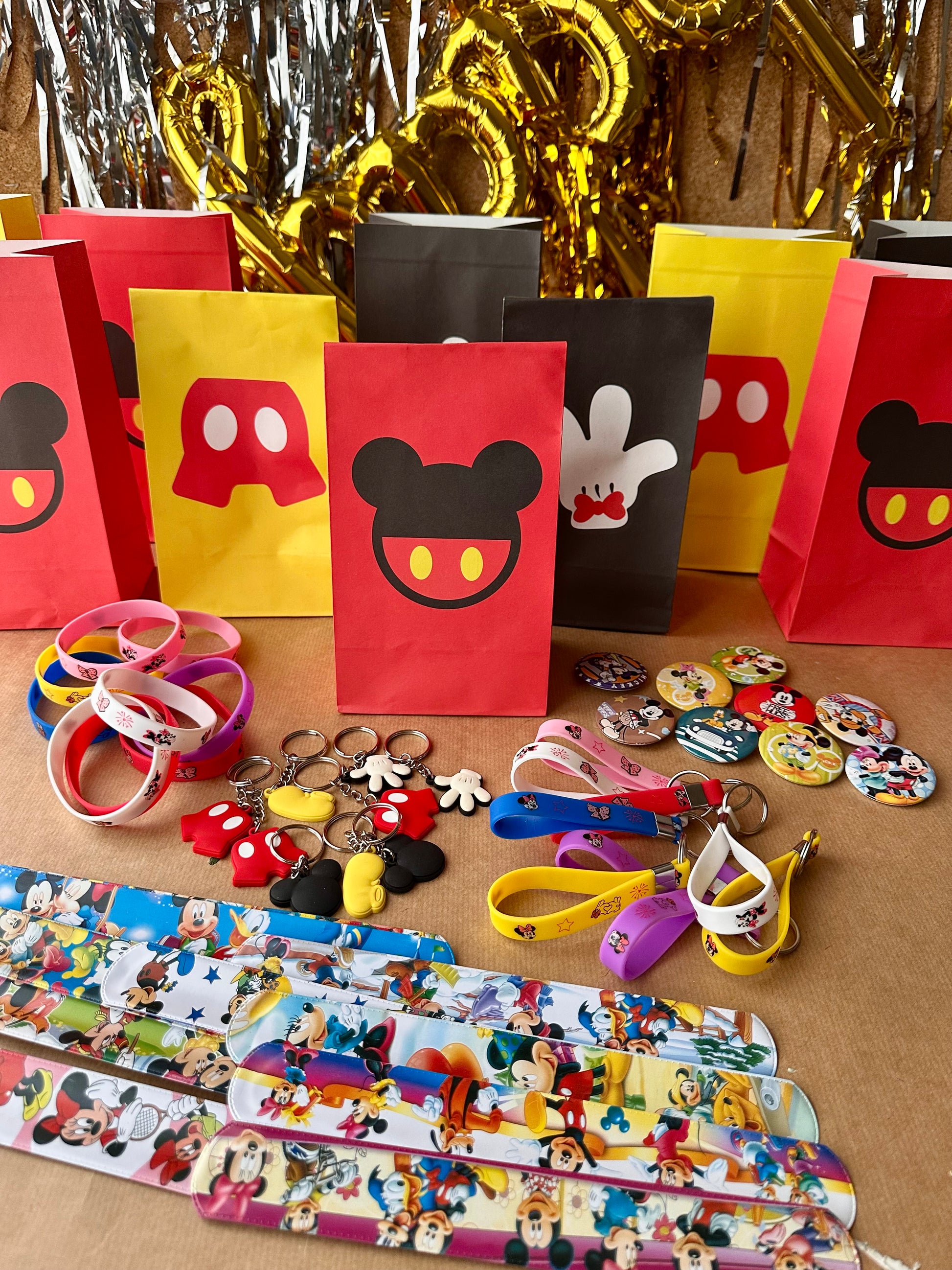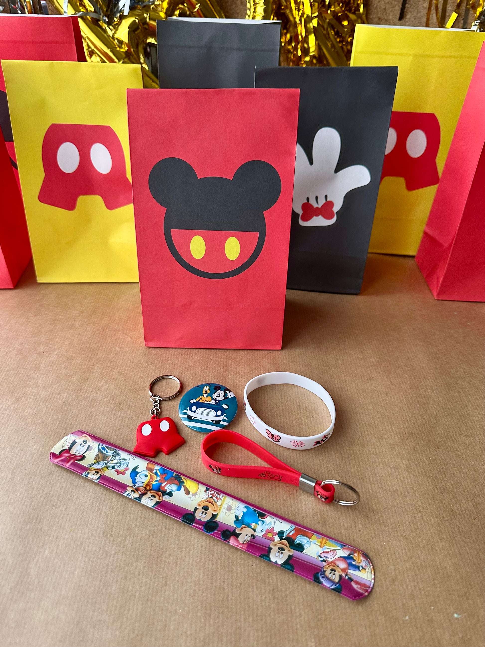 Make your little oneโs celebration extra special with our Mickey Mouse-themed party favor bags! Each colorful bag features adorable designs inspired by Mickey and friends โ from the classic Mickey silhouette to his iconic gloves and red shorts.